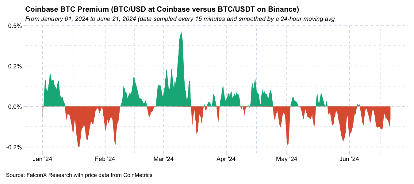 The Coinbase premium, which has been strongly correlated with the overall market direction in 2024, highlights the same trend.