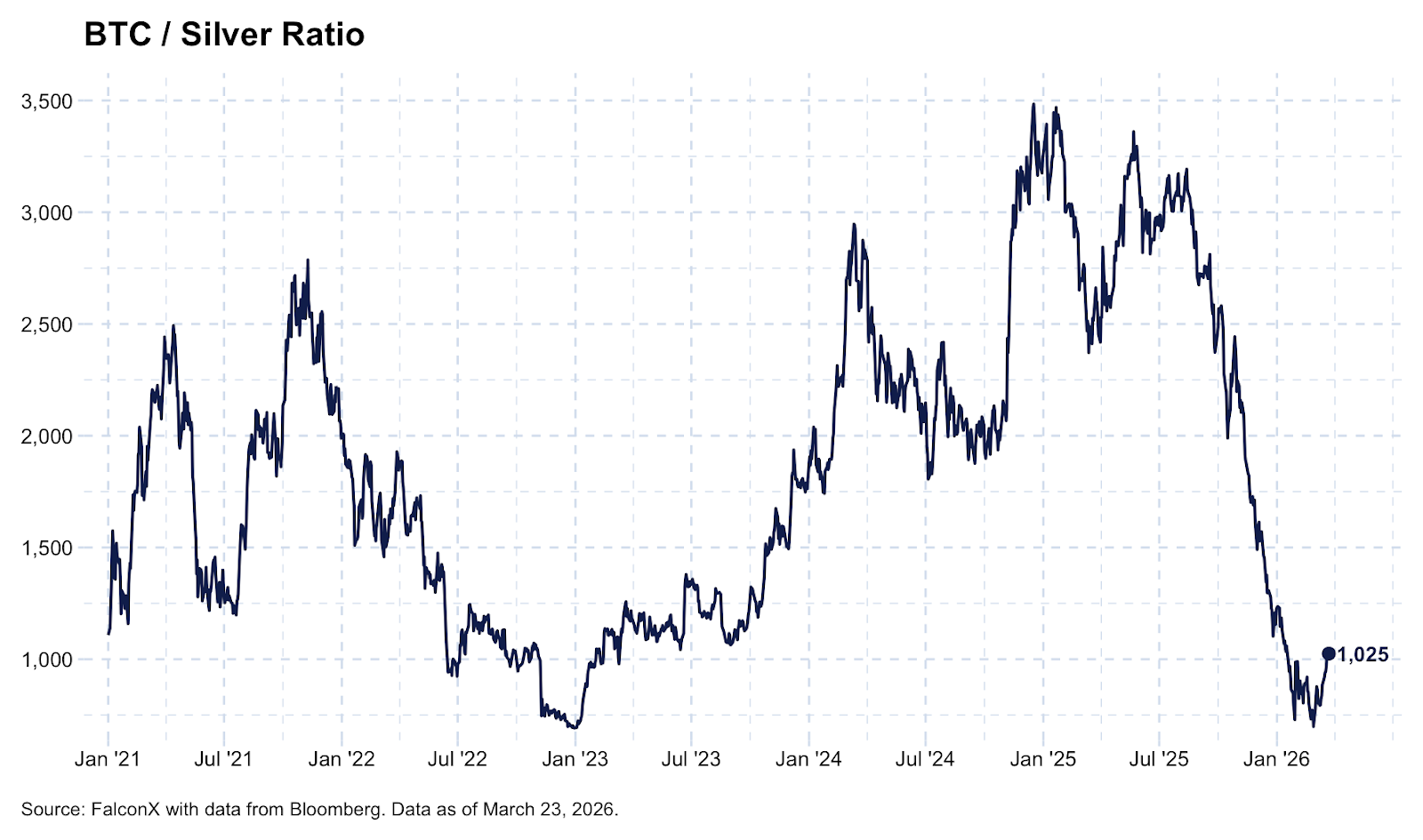 The BTC strength vs metals may also be technical in nature. The BTC/SILVER ratio bounced after hitting multi-year lows of around 700, which marked the prior bottom for the pair in December 2022. A lull in metals may be a key condition for BTC to further regain its footing as traders that flocked to participate in the gold and silver rallies may come back to trading crypto.