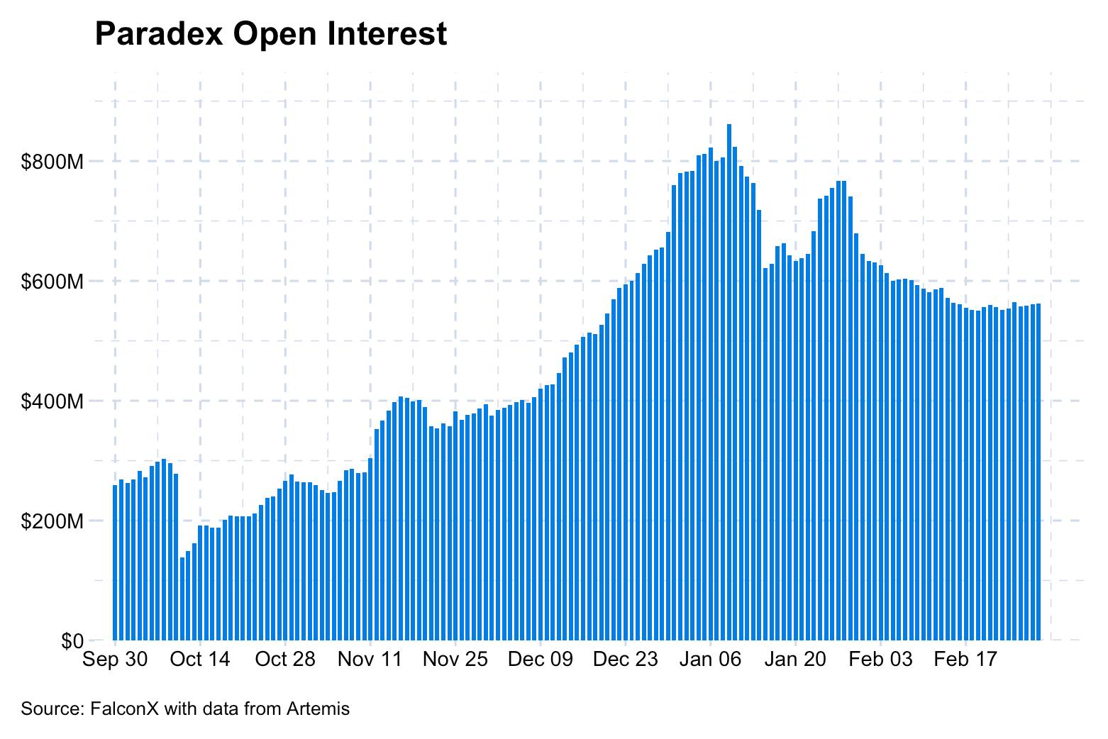 During its Season 2 rewards period, Paradex experienced significant traction. Open interest climbed to a peak of $862M in January 2026, before falling after the rewards period ended and as deleveraging occurred throughout the crypto markets following the Feb 5th selloff, per data from Artemis. Open interest has stabilized since mid-February 2026, sitting around $542M as of Mar 2. In the last full week of data, weekly active users stood at around 4,000, while daily volumes were around $300M. As of Mar 2, 2026, 30D annualized revenue stood at $8.0M.