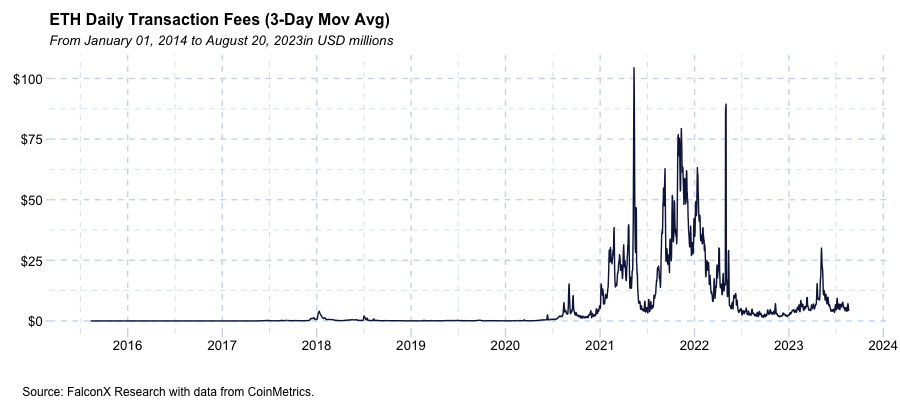 Ethereum L1 fees since friends.tech launched on August 10 are 25% lower than the average for the year until then, which is in stark contrast to the times when the success of early NFT application CryptoKitties or the latest Yuga Labs NFT drop would commonly temporarily clog the Ethereum network.