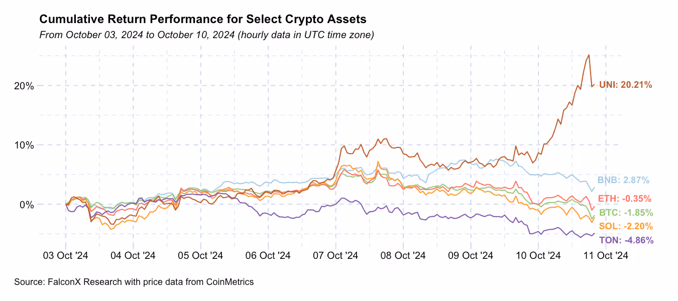 The anticipated "Uptober" bull run has failed to materialize in the first ten days of the month. The uncertainty surrounding China's market-boosting policies, further exacerbated by a mixed September CPI report, brought in some bearishness. However, calls for a successful soft landing engineered by the Fed brought some excitement toward the end of the week.